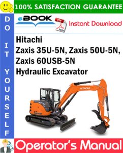 This is the COMPLETE Operator's Manual for the Hitachi Zaxis 35U-5N, Zaxis 50U-5N, Zaxis 60USB-5N Hydraulic Excavator. This Manual Describes Procedures for Operation, Handling, Lubrication, Maintenance, Checking, and Adjustment. it…