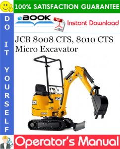This is the COMPLETE Operator's Manual for the JCB 8008 CTS, 8010 CTS Micro Excavator. Models and Serial Number: – 8008 CTS from serial number 1239500 – 8010 CTS from…