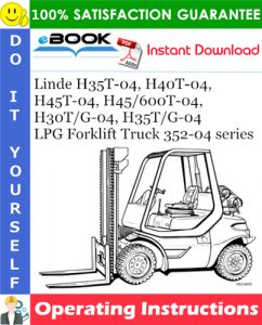 This is the COMPLETE Operating Instructions Manual for the Linde Forklift Trucks Type 352-04 with LPG Engine; models H35T-04, H40T-04, H45T-04, H45/600T-04, H30T/G-04, H35T/G-04. This Manual Describes Procedures for Operation,…