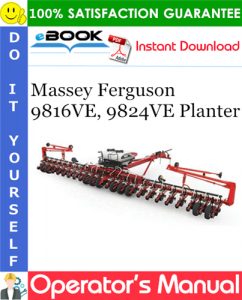 This is the COMPLETE Operator's Manual for the Massey Ferguson 9816VE, 9824VE Planter. This Manual Describes Procedures for Operation, Handling, Lubrication, Maintenance, Checking, and Adjustment. it will help the operator…