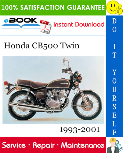 This is the COMPLETE Service Repair Manual for the Honda CB500 Twin Motorcycle. Production model years 1993 1994 1995 1996 1997 1998 1999 2000 2001. It Covers complete tear down and rebuild, pictures and part diagrams, torque specs, maintenance, troubleshooting, etc.