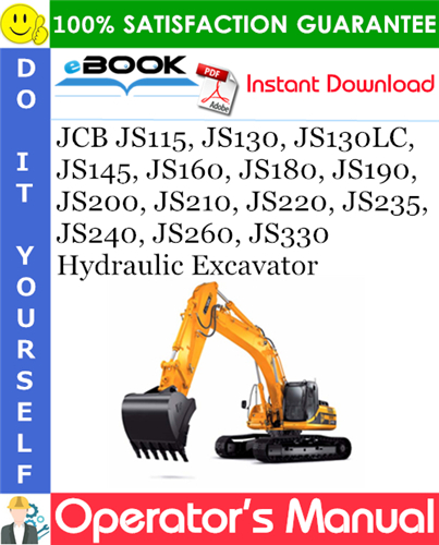 This is the COMPLETE Operator’s Manual for the JCB JS115, JS130, JS130LC, JS145, JS160, JS180, JS190, JS200, JS210, JS220, JS235, JS240, JS260, JS330 Hydraulic Excavator.