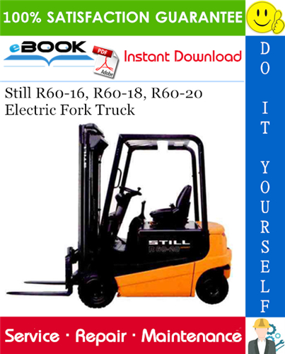This is the COMPLETE Service Repair Manual for the Still R60-16, R60-18, R60-20 Electric Fork Truck. It contains deep information about maintaining, assembly, disassembly and servicing your Still R60-16, R60-18, R60-20 Electric Fork Truck.