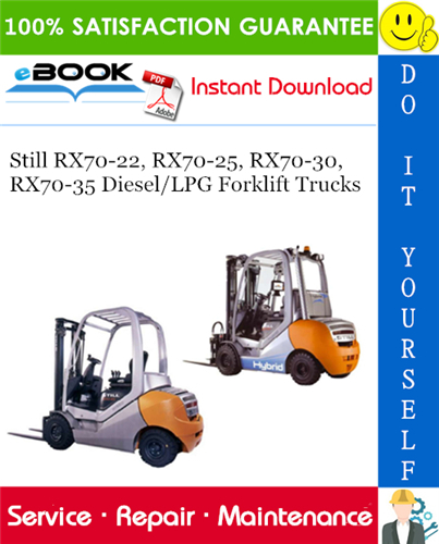 This is the COMPLETE Service Repair Manual for the Still RX70-22, RX70-25, RX70-30, RX70-35 Diesel/LPG Forklift Trucks. It contains deep information about maintaining, assembly, disassembly and servicing your Still Forklift Trucks.