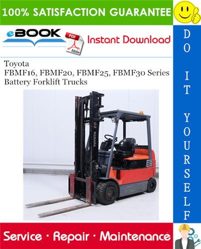 This is the COMPLETE Service Repair Manual for the Toyota FBMF16, FBMF20, FBMF25, FBMF30 Series Battery Forklift Trucks. It contains deep information about maintaining, assembly, disassembly and servicing your Toyota FBMF16, FBMF20, FBMF25, FBMF30 Series Battery Forklift Trucks.