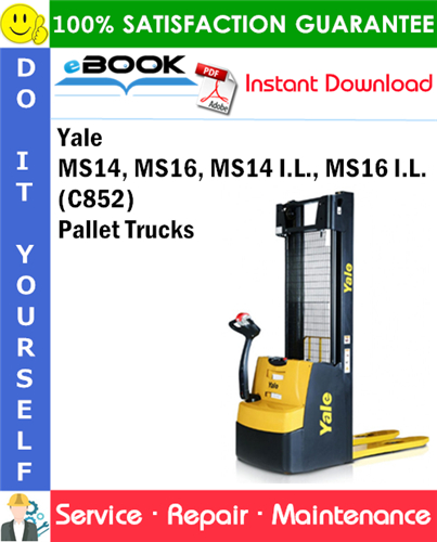 This is the COMPLETE Service Repair Manual for the Yale MS14, MS16, MS14 I.L., MS16 I.L. (C852) Pallet Trucks. It contains deep information about maintaining, assembly, disassembly and servicing your Yale MS14, MS16, MS14 I.L., MS16 I.L. (C852) Pallet Trucks.
